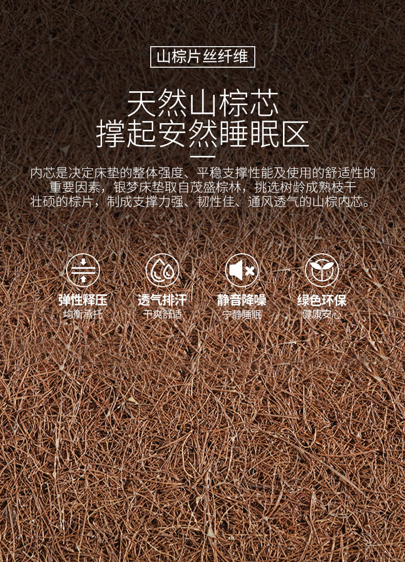 河北棕樂(lè)自然夢(mèng)有限公司是一家生產(chǎn)銷售:山棕床墊、椰棕床墊的植物纖維彈性床墊企業(yè),擁有自動(dòng)化生產(chǎn)工藝、標(biāo)準(zhǔn)化廠房,專業(yè)技術(shù)人員層層把控生產(chǎn)環(huán)節(jié),致力于為消費(fèi)者打造強(qiáng)腰、護(hù)脊、易入睡的高品質(zhì)產(chǎn)品!