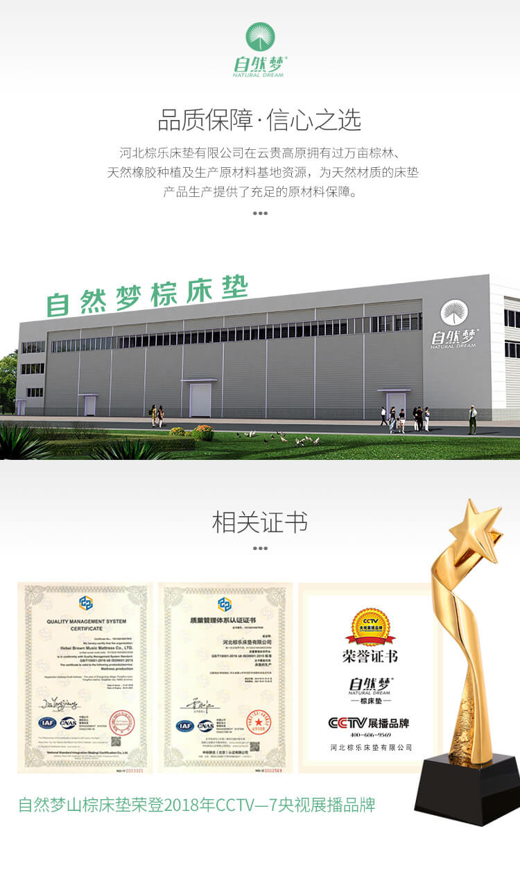 河北棕樂自然夢有限公司是一家生產銷售:山棕床墊、椰棕床墊的植物纖維彈性床墊企業,擁有自動化生產工藝、標準化廠房,專業技術人員層層把控生產環節,致力于為消費者打造強腰、護脊、易入睡的高品質產品!