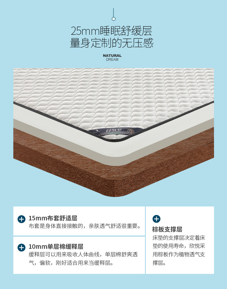 河北棕樂自然夢有限公司是一家生產銷售:山棕床墊、椰棕床墊的植物纖維彈性床墊企業,擁有自動化生產工藝、標準化廠房,專業技術人員層層把控生產環節,致力于為消費者打造強腰、護脊、易入睡的高品質產品!